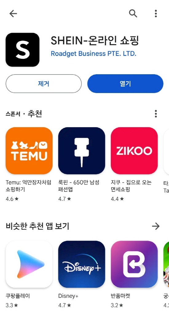 플레이스토어 검색창에 "쉬인"을 검색하시면 아래와 같은 화면이 나오는데요. 검색이 귀찮으신 분들을 위해서 위에 다운로드 버튼을 가지고 왔습니다.