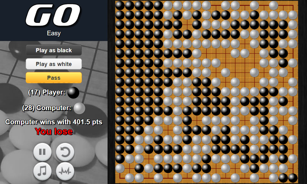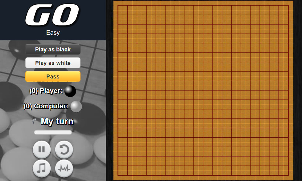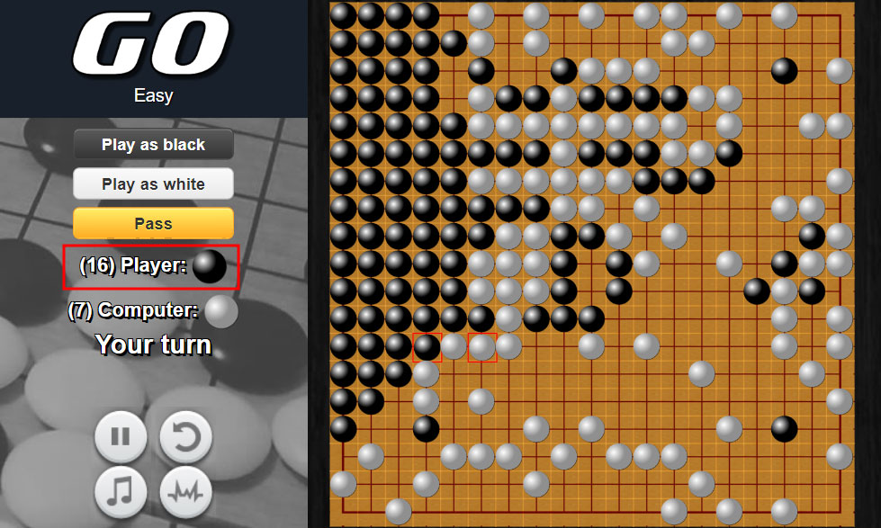 왼쪽에 흑돌, 백돌 중 선택을 하면 바둑판이 회전하면서 게임이 시작됩니다.
