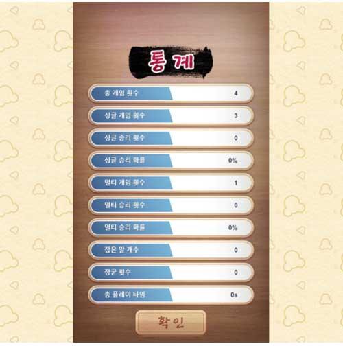 그냥 나오더라도 패배 처리가 되므로 높은 기록을 세우고 싶다면 주의하셔야 합니다. 싱글멀티 횟수와 확률, 잡은 말 개수와 장군 횟수, 총 플레이 타임이 기재됩니다.