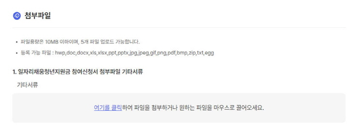 이렇게 첨부해 주시면 됩니다. 모두 이런 정부 지원 사업 꼭 챙겨서 현금으로 지원금 받아볼 수 있습니다. 저는 이미 취업한 지 좀 된지라 해당이 안 되지만 도움이 되었으면 좋겠습니다.