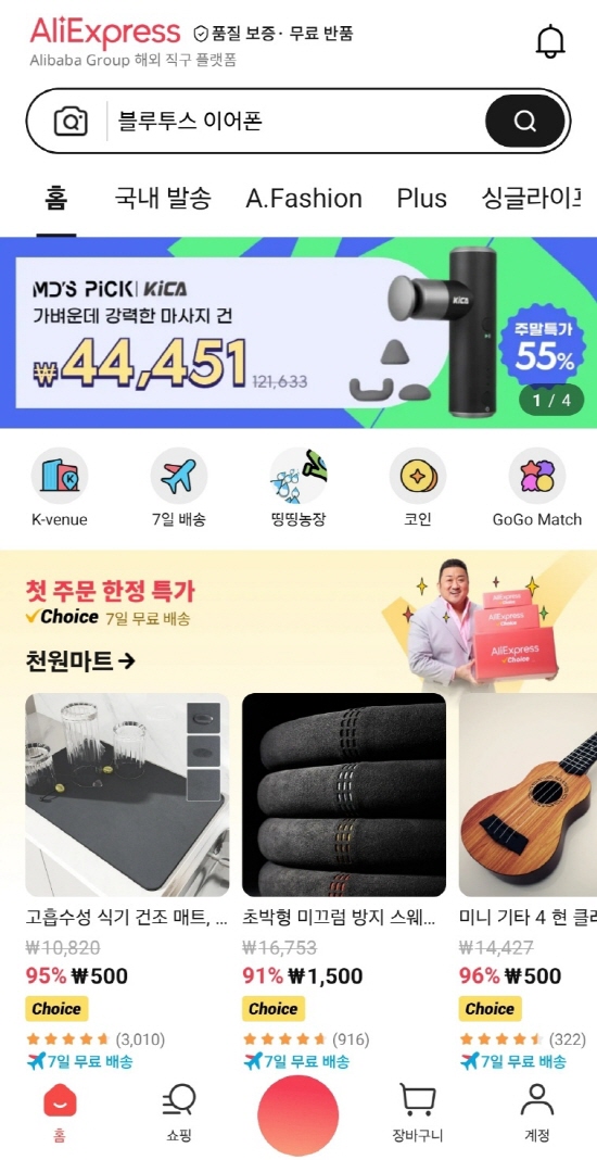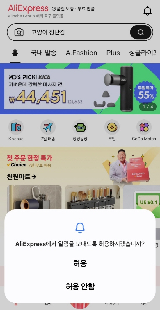 회원 가입을 마친 알리익스프레스의 메인화면입니다.