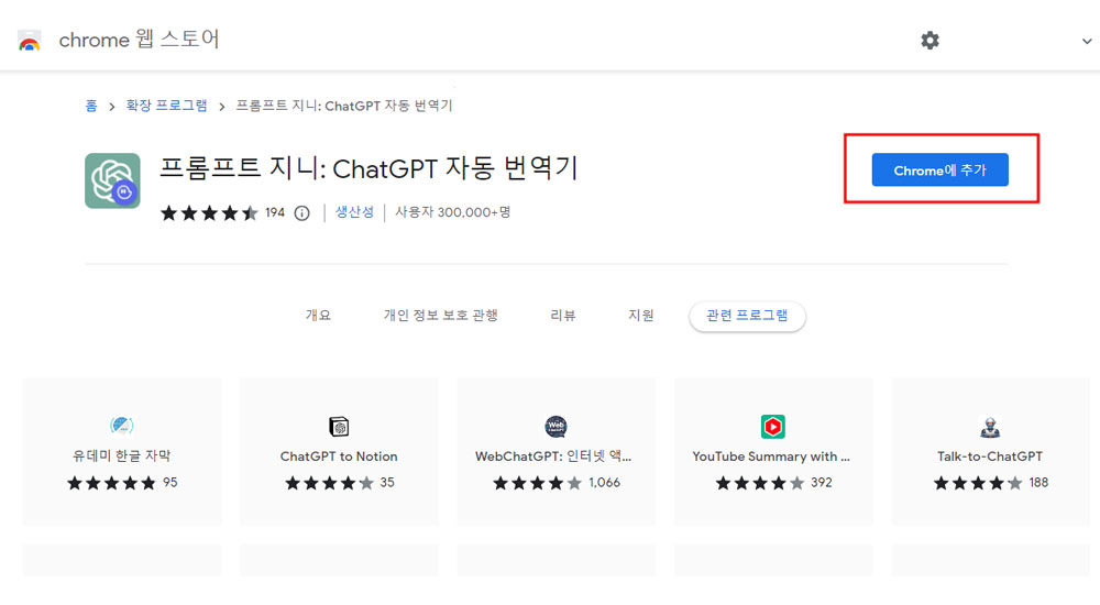 크롬의 "프롬프트 지니"를 설치해 주세요. 우측 상단에 "chrome에 추가"라고 나와있는데 여기에서 설치 버튼을 클릭하면 설치가 됩니다. 다시 말씀드리지만 무료입니다.